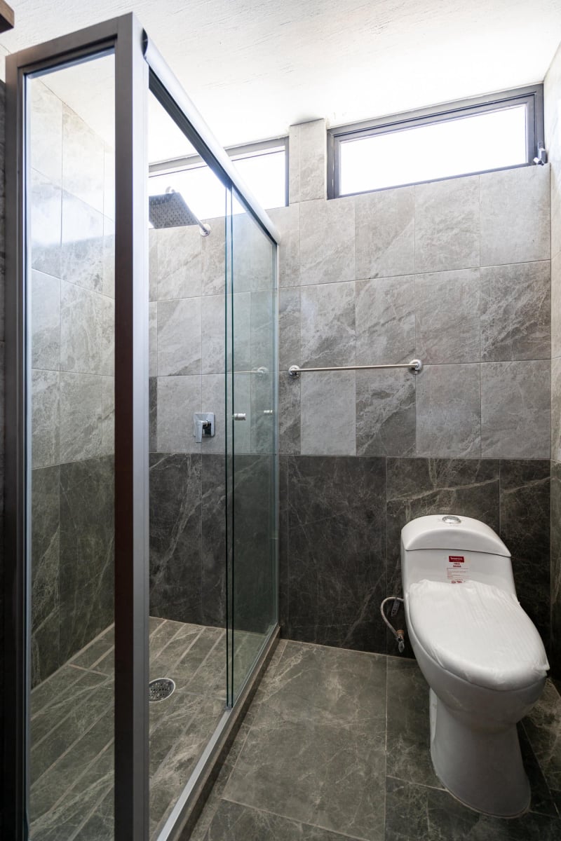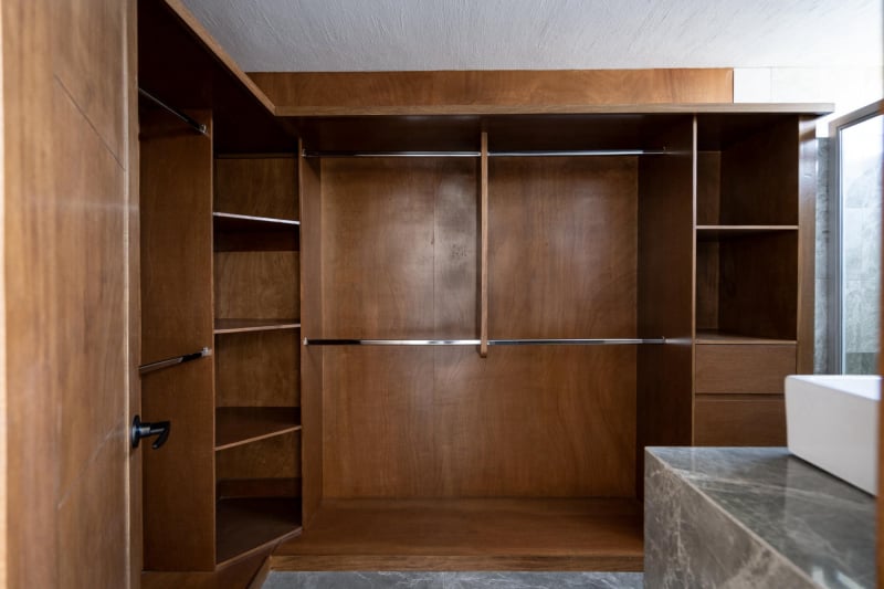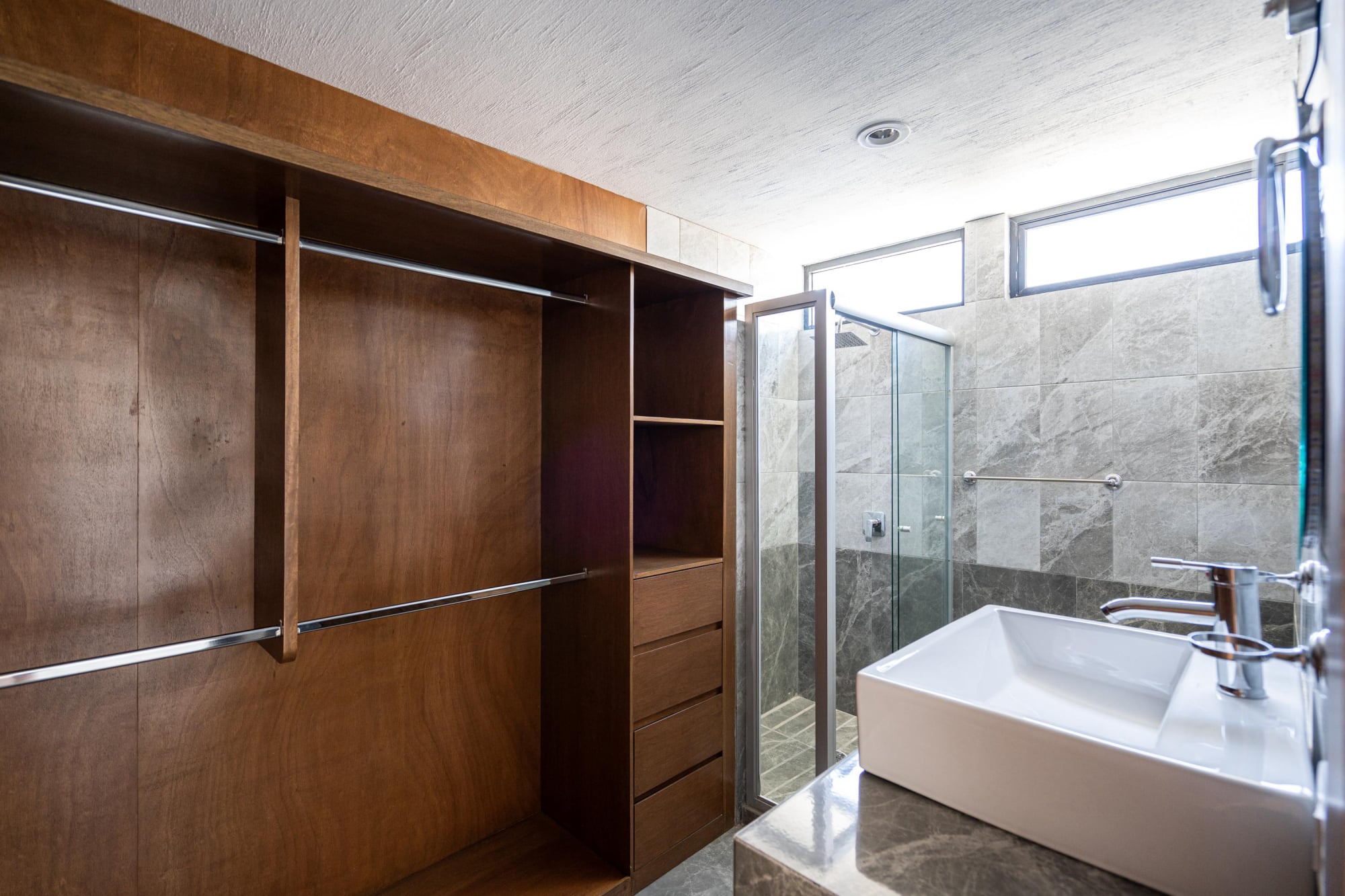 👉🏻Recámara principal con baño completo y vestidor forrado de madera