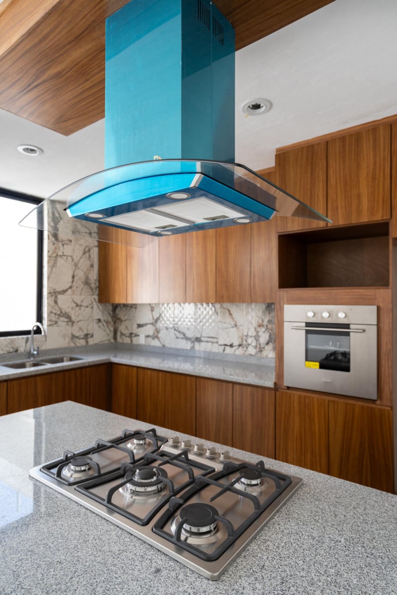 👉🏻Cocina integral con barra de granito (parrilla y horno panorámico)